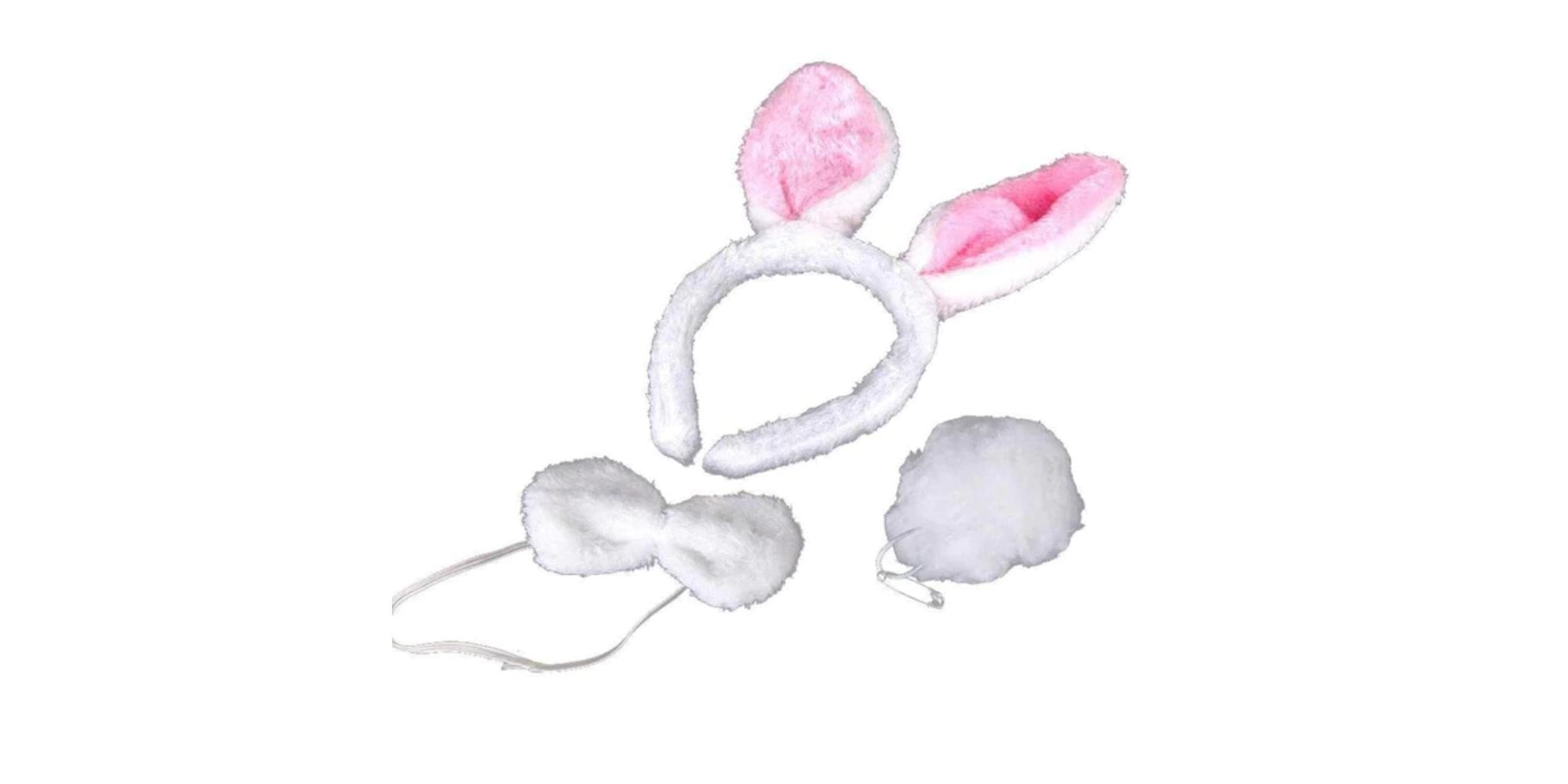 אביזרים לתחפושת שפן לבן | קשת+פפיון+זנב