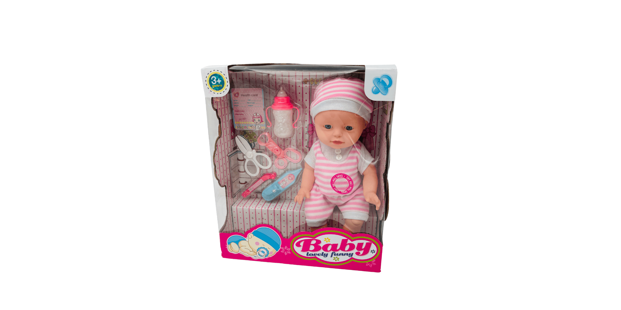 סט בובה ואביזרים כולל בובה – מדחום – בקבוק – מספרי ציפורניים -מספרי שיער – וכרטיס רפואי 1 יחידה | *התמונה להמחשה בלבד בכפוף למלאי הקיים בחנות