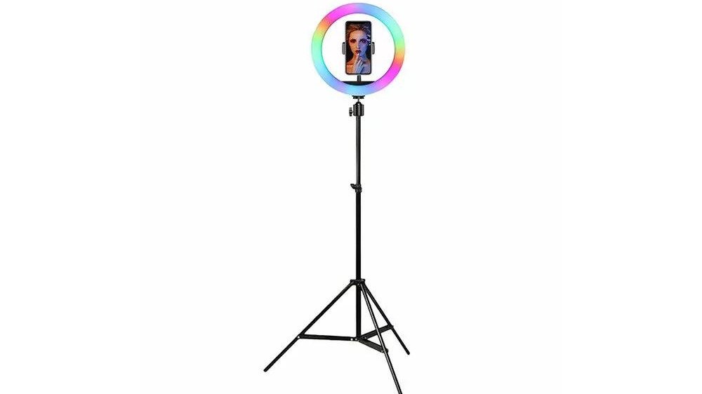 ינג לייט צבעוני 33 ס”מ RGB עוצמתי ומתכוונן עם חצובה עד 2 מטר