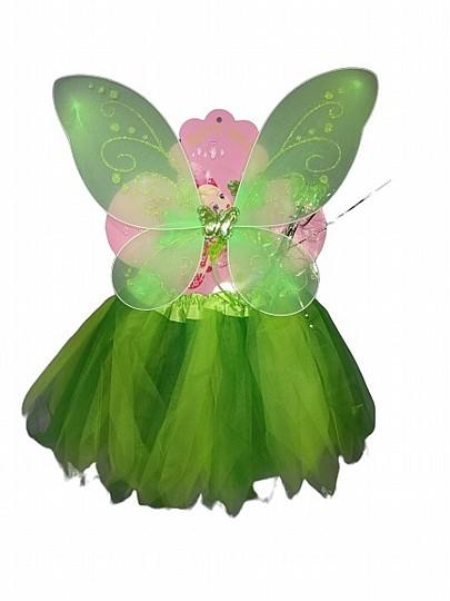 תלבושת טינקרבל פיה ירוקה | חצאית, כנפיים | 1 יחידה