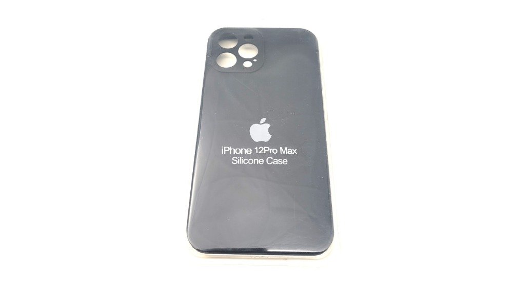 מגן סיליקון לאייפון 12 פרו מקס עם לוגו והגנה למצלמה – שחור