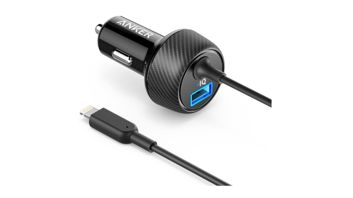 מטען מהיר כפול לרכב 24W עם כבל מובנה לאייפון מבית ANKER