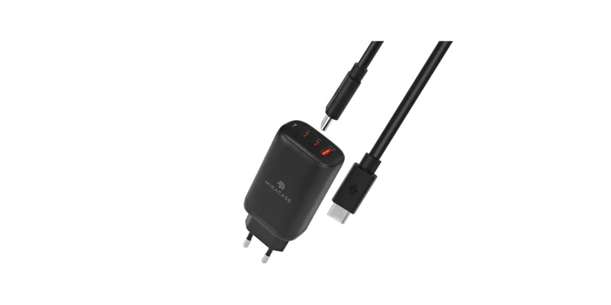 מטען קיר מהיר PD2 65W+כבל C To C100W בצבע שחור מבית Miracase