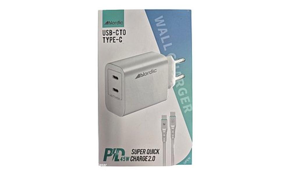 מטען קיר 2יצ’ טייפC +כבל יחידה NORDIC 45W