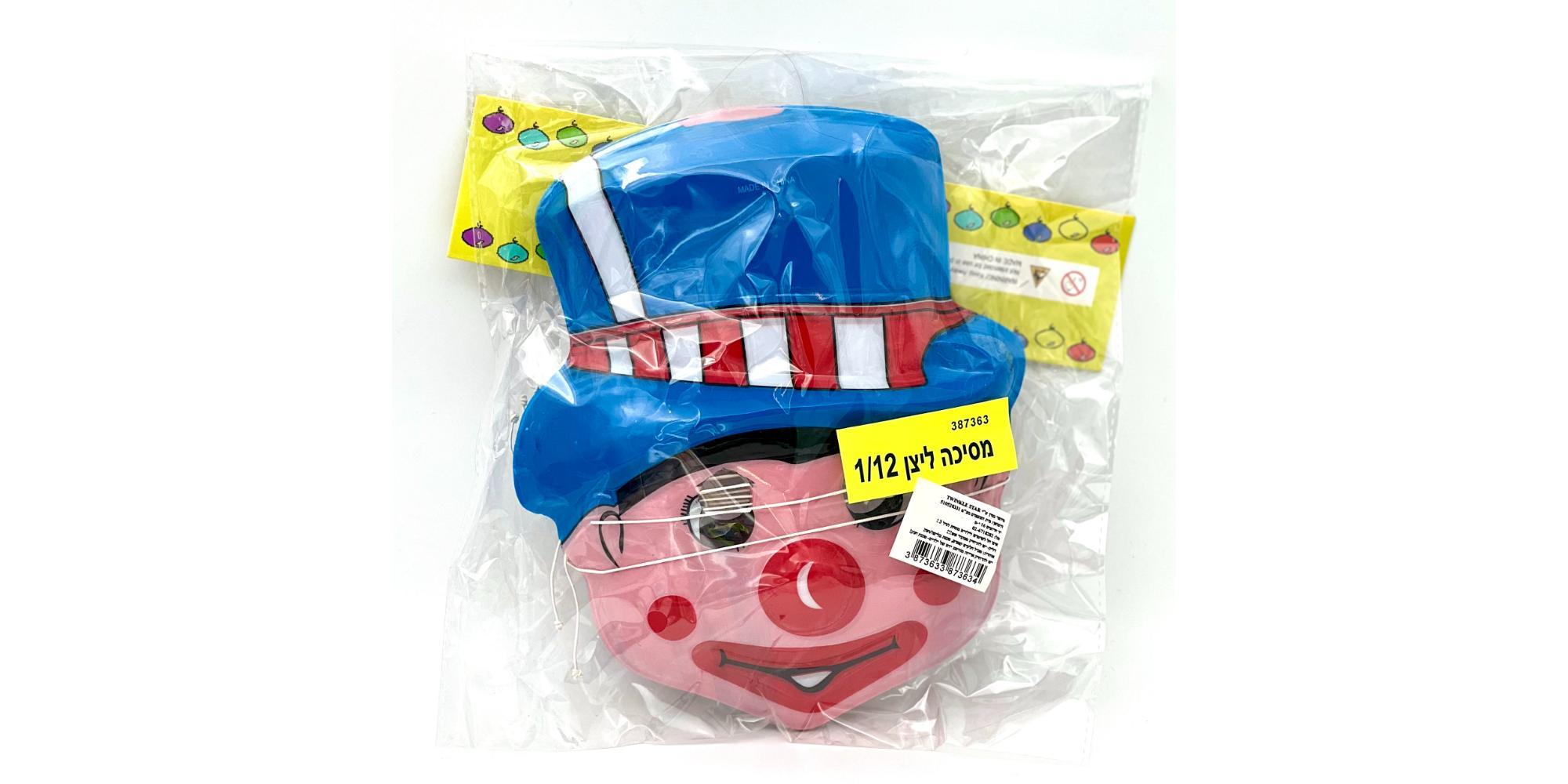 מסכה מפלסטיק | 12 יחידות | דגם ליצן