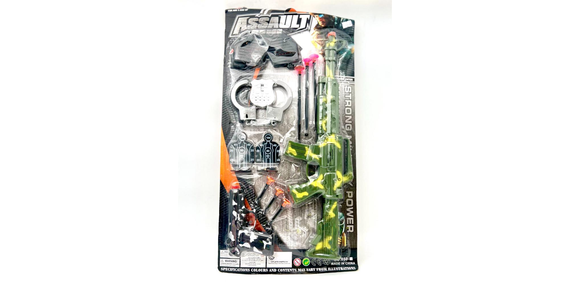ערכת לוחם | הערכה מכילה – נשק מעוצב+אקדח מעוצב מפלסטיק, 6 חיצים, אזיקים, תג, 2 מטרות וכו