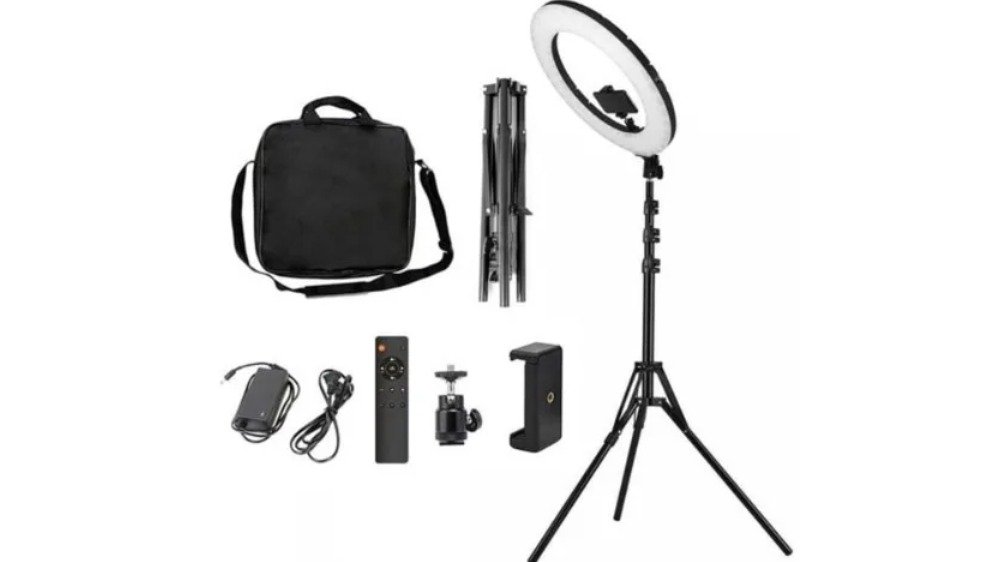רינג לייט מקצועי 45 ס״מ 55w + חצובה ושלט – HQ 18