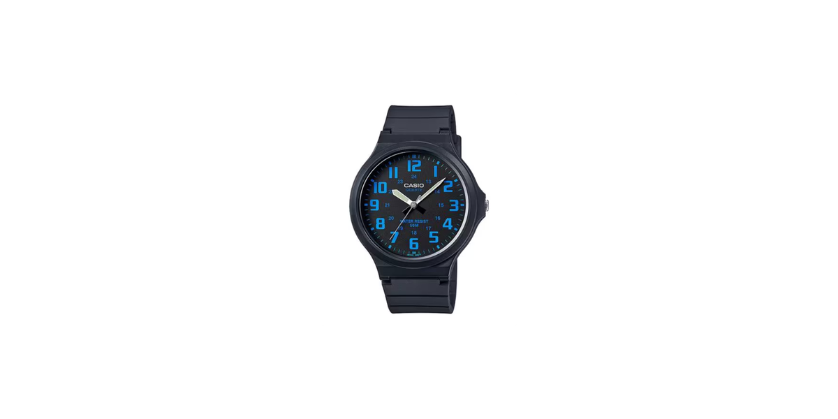שעון יד אנלוגי יוניסקס עם רצועת שרף שחורה Casio MW-240-2BVDF – צבע שחור / כחול