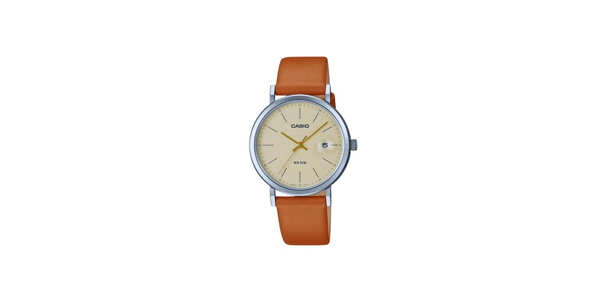 LTP-E175L-5EVDF שעון אופנתי בעל רצועת עור חומה ומחוגי זהב