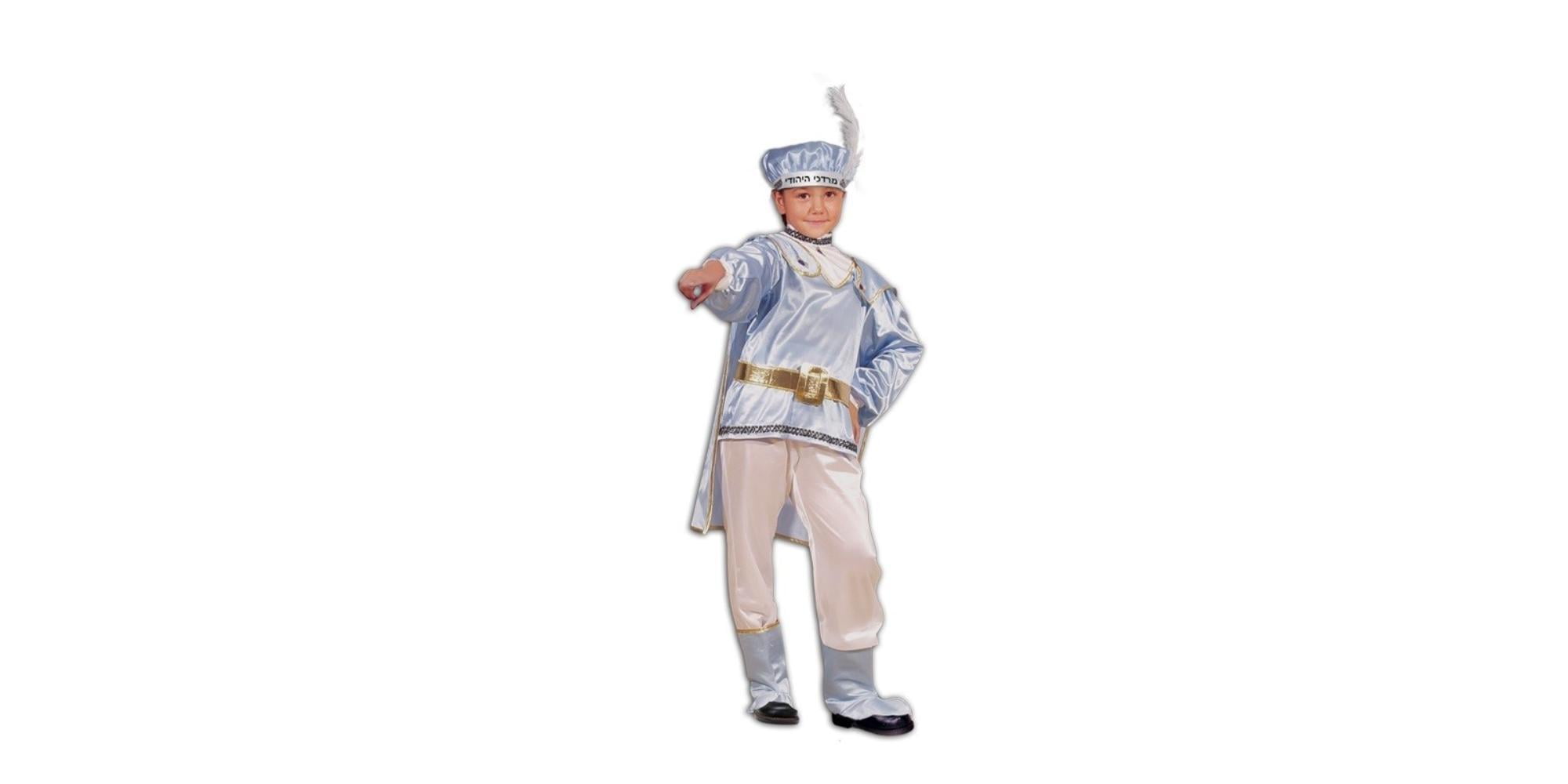 תחפושת מרדכי היהודי | מידה 4-12 | מתאים לגילאי 3-12 | התחפושת כוללת גלימה, חולצה, מכנסיים, חגורה וכובע עם נוצה | 1 יחידה